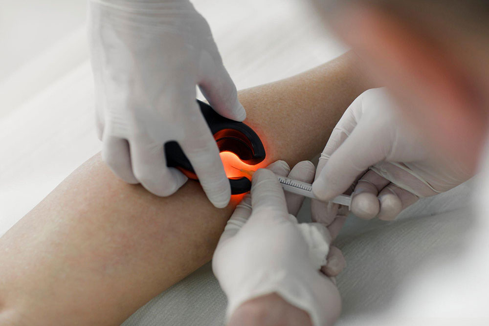 Near-infrared Polymatech LEDs enhance subdermal vein visibility, supporting devices that improve first-attempt success rates in IV access. Designed for clinical reliability and patient safety.